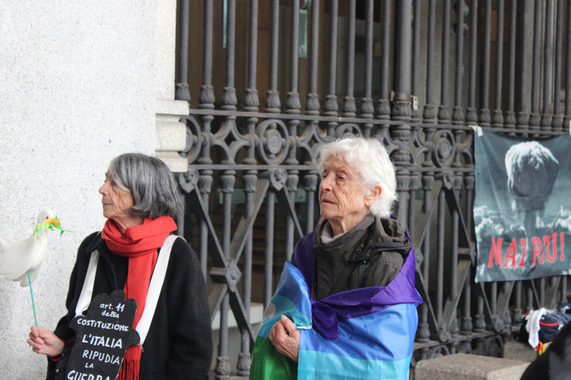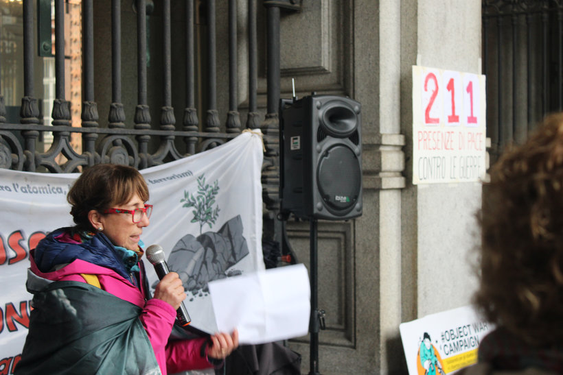Con questo volevo concludere ricordando ciò che è successo anche ieri a Pisa e Livorno, perché in Italia c’è un ottima, bellissima e grande risposta della società civile contro la guerra che va sostenuta, ma la cosa più importante è che questa resistenza alla guerra deve essere nonviolenta, perché nel momento in cui i toni si alzano e si permettono le azioni violente, si è al pari di chi usa le armi contro chi ha nazionalità diverse e quindi il sostegno va ai portuali che continuano a rifiutarsi di caricare i cargo con materiale bellico e a tutti i giovani e meno giovani che in Toscana ieri hanno bloccato le ferrovie, vi ricordo che adesso è un crimine in Italia, per impedire il passaggio di treni carichi di materiale bellico.