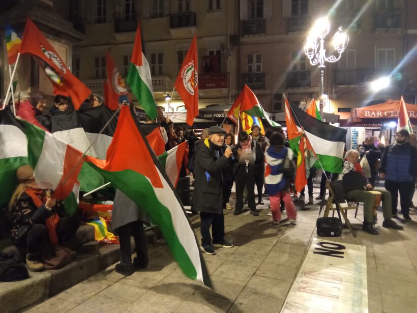 Il corteo è poi confluito in quella che, all’anagrafe municipale, è denominata piazza Yenne, ma che ormai da quasi cinque mesi è stata ribattezzata piazza dell’indignazione. Là dove ogni sera dalle sei e mezza alle otto, si ritrova il presidio giornaliero in solidarietà con la Palestina e contro il genocidio e le guerre.