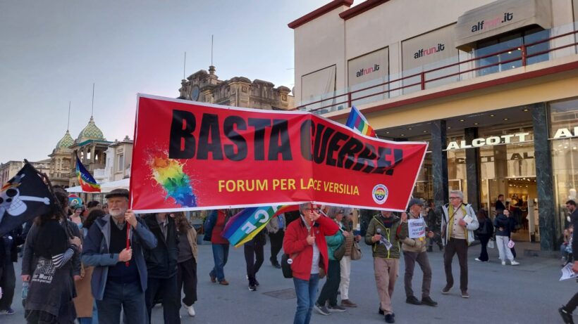 Corteo colorato di bandiere, striscioni e cartelli, partecipato da molte sigle della società civile e dai passanti che si sono uniti, 500 persone circa che sfilano per le vie di Viareggio. Al termine gli interventi sottolineano le sfaccettature degli eventi: dall’ennesimo spregio del diritto internazionale al sadismo della furia bellica, all’eccidio di civili innocenti come le bambine della scuola bombardata in Iran, all’ingordigia di petrolio per tappare le falle di un debito enorme, per arrivare alla necessità e volontà di resistenza al nostro governo, che non rispettando l’articolo 11 della Costituzione legittima questo obbrobrio, fino a contemplare l’ipotesi di concedere l’uso delle nostre basi.