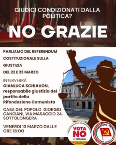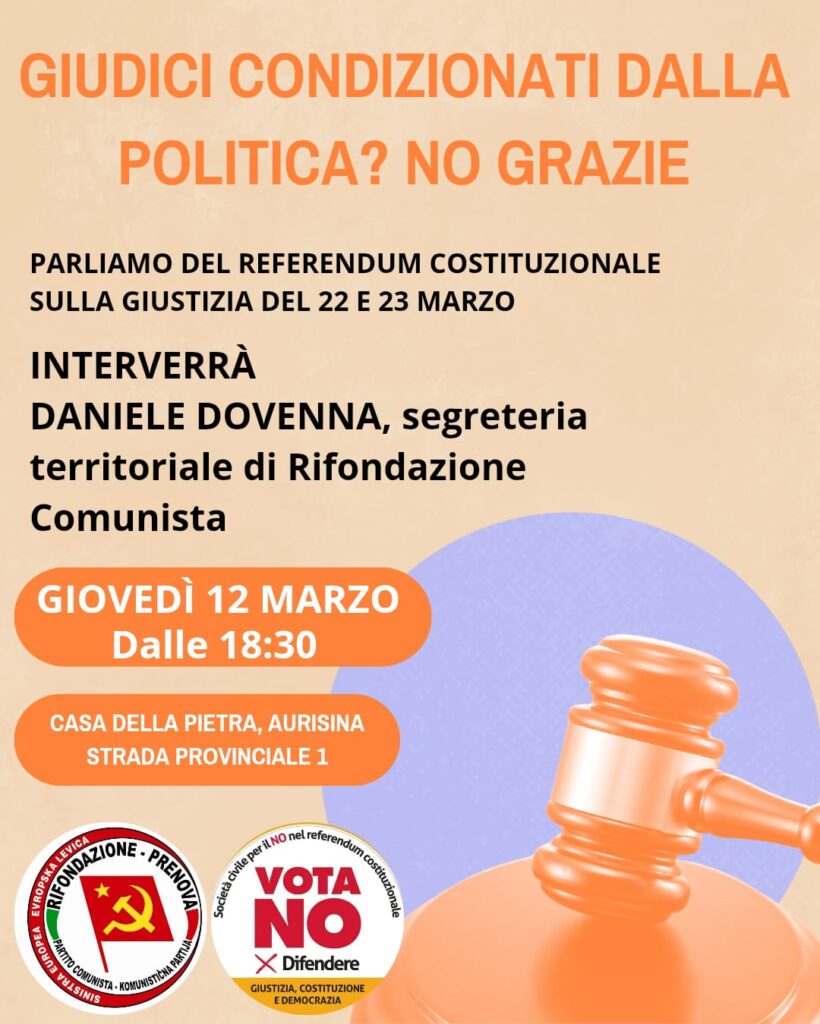 Il Partito della Rifondazione Comunista (Trieste), in collaborazione con la Società civile per il NO al referendum costituzionale, organizza due incontri dal titolo “Giudici condizionati dalla politica? No, grazie”: