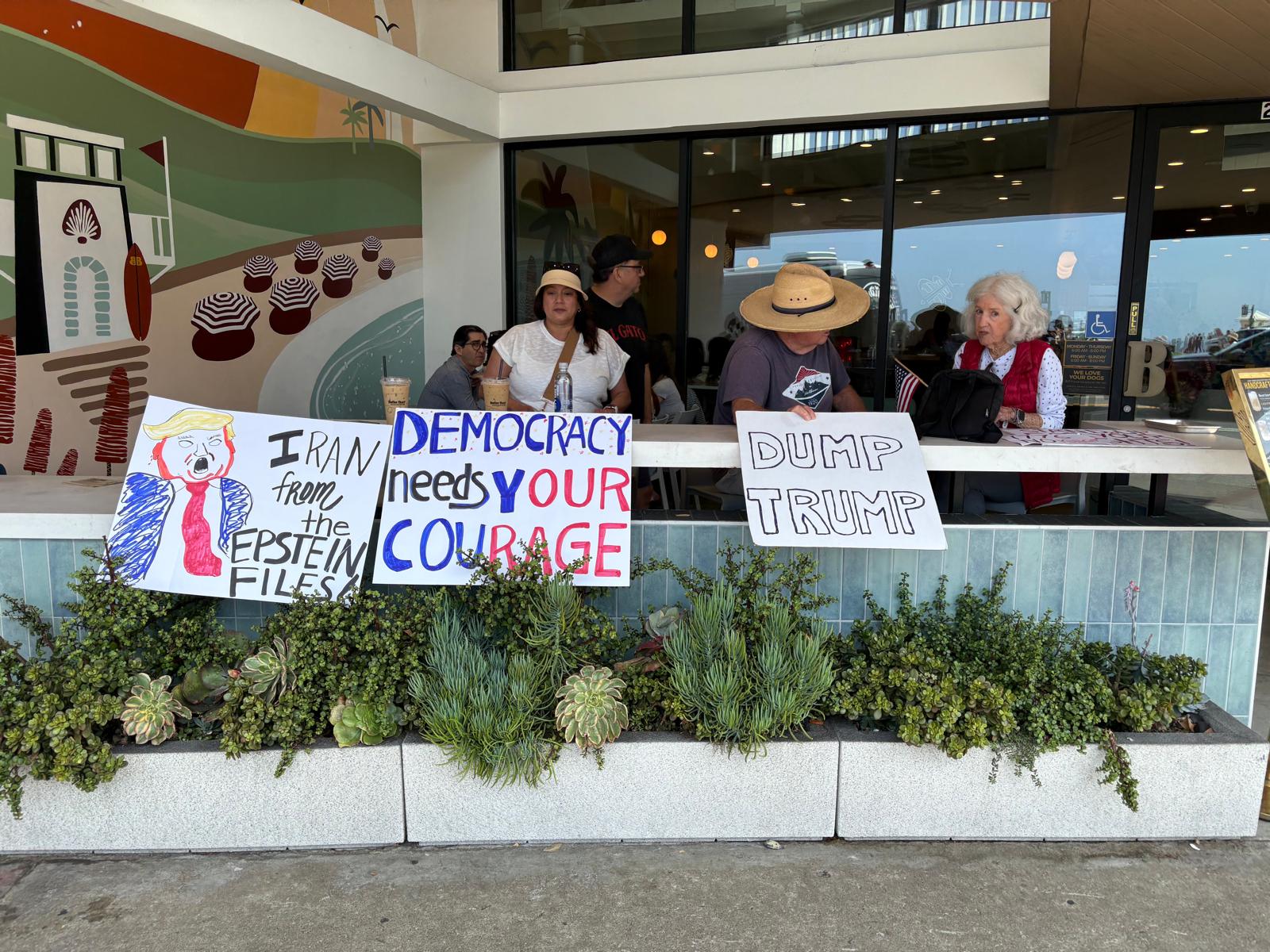 Mentre cammino per tornare alla macchina e “volare” verso Long Beach appesi fuori da un bar ci sono tre cartelli e uno, di fianco al faccione di Trump, propone un gioco di parole che coglie in pieno il sentimento di tutti: “I RAN from the EPSTEIN FILES”.