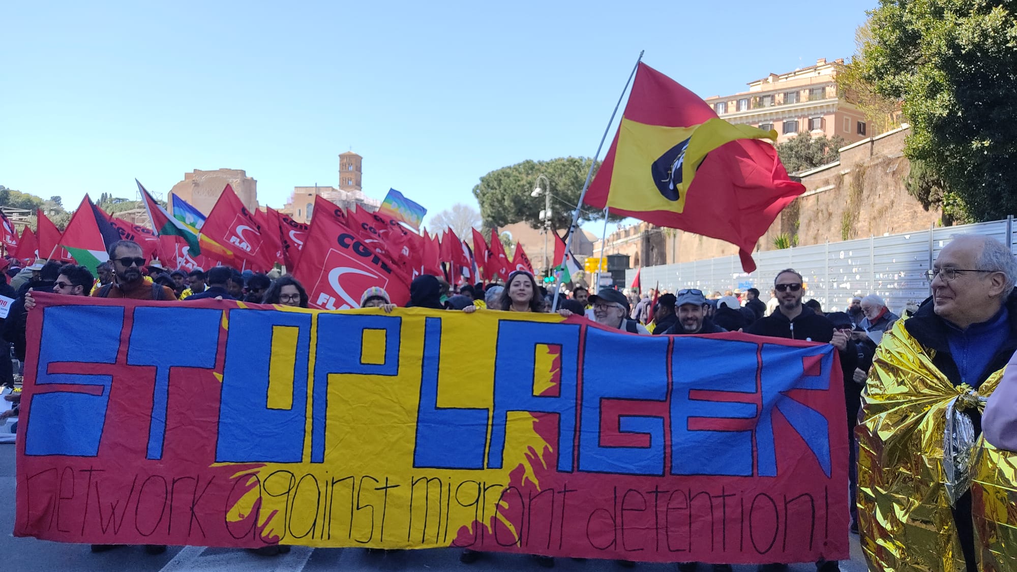 Sabato 28 marzo centinaia di persone hanno sfilato dal Colosseo a Piazza della Repubblica per chiedere diritti, permesso di soggiorno e la chiusura dei CPR, confluendo poi nella grande manifestazione No Kings.