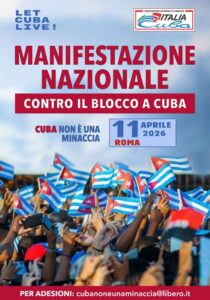 L’ Associazione Nazionale di Amicizia Italia-Cuba si fa portavoce dell’appello della società civile per una mobilitazione straordinaria di solidarietà con il popolo di Cuba, e convoca una manifestazione nazionale per il prossimo 11 APRILE 2026.