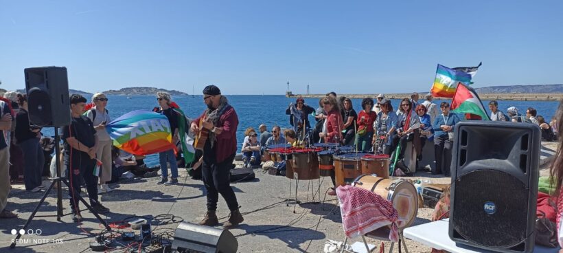600 di noi ieri a Marsiglia erano dalla parte giusta della Storia, a sostenere con la musica, i battimani, la voce, insomma col cuore, quegli altri di noi che partivano per la Palestina martoriata. È stato veramente un momento emozionante! Molti giovani e molti vecchi, a segnare un lascito e una continuità, a segnare una Resistenza che va avanti da 80 anni.