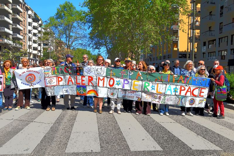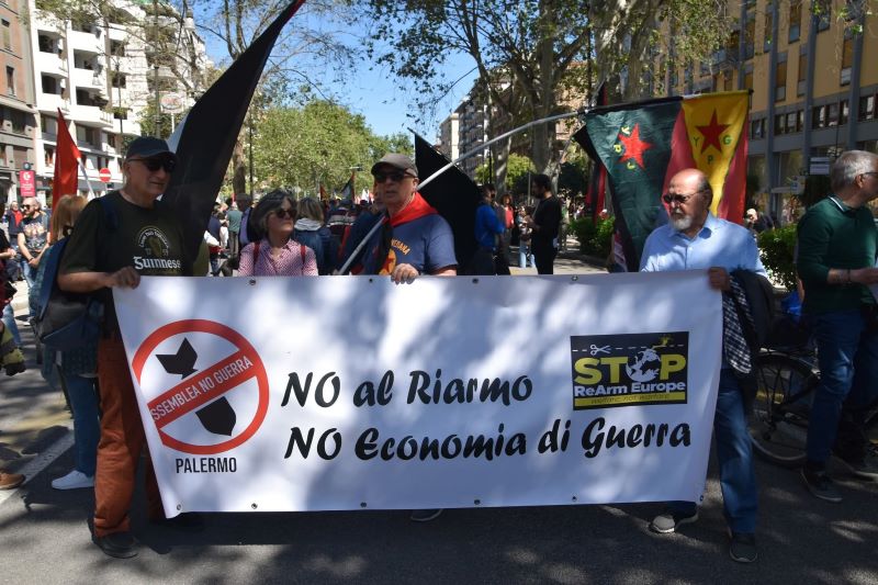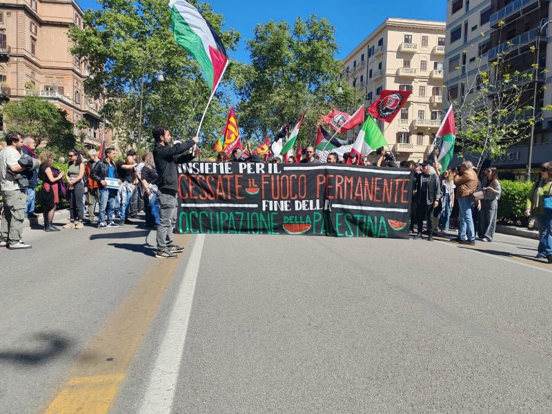 Si vedono anche rappresentanti del centrosinistra fra i quali il PD e i Giovani Democratici, ci sono anche le bandiere ed i manifestanti di Potere al Popolo e di Rifondazione Comunista, c’è l’UDU, il collettivo OSA Opposizione Studentesca Alternativa, gli striscioni della FP Cgil, dell’Associazione Cristiana Lavoratori “Achille Grandi” e del Movimento per il No al referendum che prosegue la mobilitazione in difesa della Costituzione e per sostenere le lotte in difesa della Pace e contro le politiche di riarmo. Chiude il corteo lo striscione del circolo Arci A.P.S. Amicizia Sicilia – Palestina “Al Quds” Palermo.