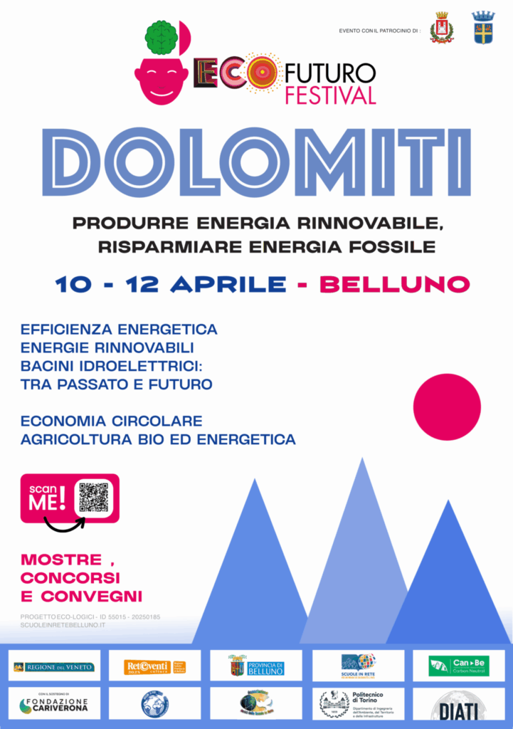 Le Scuole in Rete e l’Associazione Amici delle Scuole in Rete, all’interno del progetto Eco-Logici con Insieme si Può, il Politecnico di Torino ed Ecofuturo presentano l’edizione del festival dedicato all’innovazione sostenibile, alle energie rinnovabili e alle buone pratiche per il futuro del pianeta in svolgimento a Belluno, dal 10 al 12 aprile.