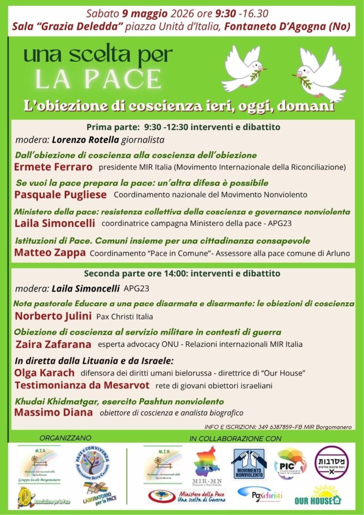 Tutti gli incontri sono a ingresso libero e aperti al pubblico con l’invito a partecipare e contribuire alla costruzione di una cultura della pace.
