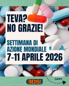 Dal 7 all’11 aprile 2026 la Global Teva Campaign Coalition promuove la rassegna di iniziative svolte mentre, in concomitanza con la “Giornata Mondiale della Salute”, l’attenzione dell’opinione pubblica viene rivolta sul diritto alla salute, un bene primario di cui però i palestinesi sono volutamente privati dal regime israeliano di colonialismo e apartheid.