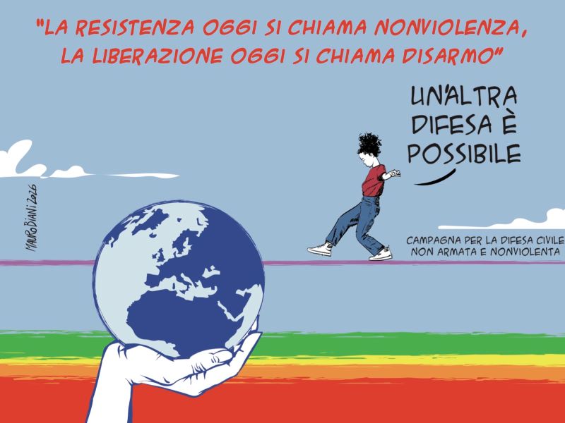 È da questa tradizione plurale che nasce la proposta di legge di iniziativa popolare per l’istituzione di un Dipartimento della Difesa Civile non armata e nonviolenta, depositata in Cassazione il 16 marzo 2026 dalla Campagna “Un’altra difesa è possibile” (Rete Italiana Pace e Disarmo, CNESC, Sbilanciamoci!). La legge dà finalmente concretezza al dettato costituzionale: Corpi civili di pace, mediazione dei conflitti, ricerca sulla Pace e il Disarmo, cooperazione e non scontro tramite strumenti anche finanziabili con le scelte dirette dei contribuenti.