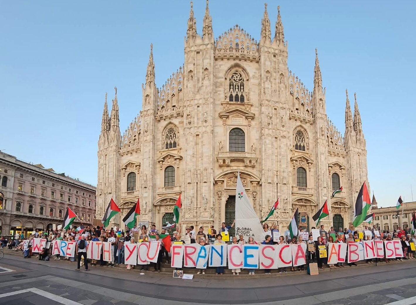 Da qualche giorno è tornata anche la nostra grande vela in piazza. Ci si reimbarca con la flotilla. Da sempre si dice: “Peccato che a Milano non ci sia il mare”, ma in piazza Duomo c’è un porto aperto a tutti e tutte.