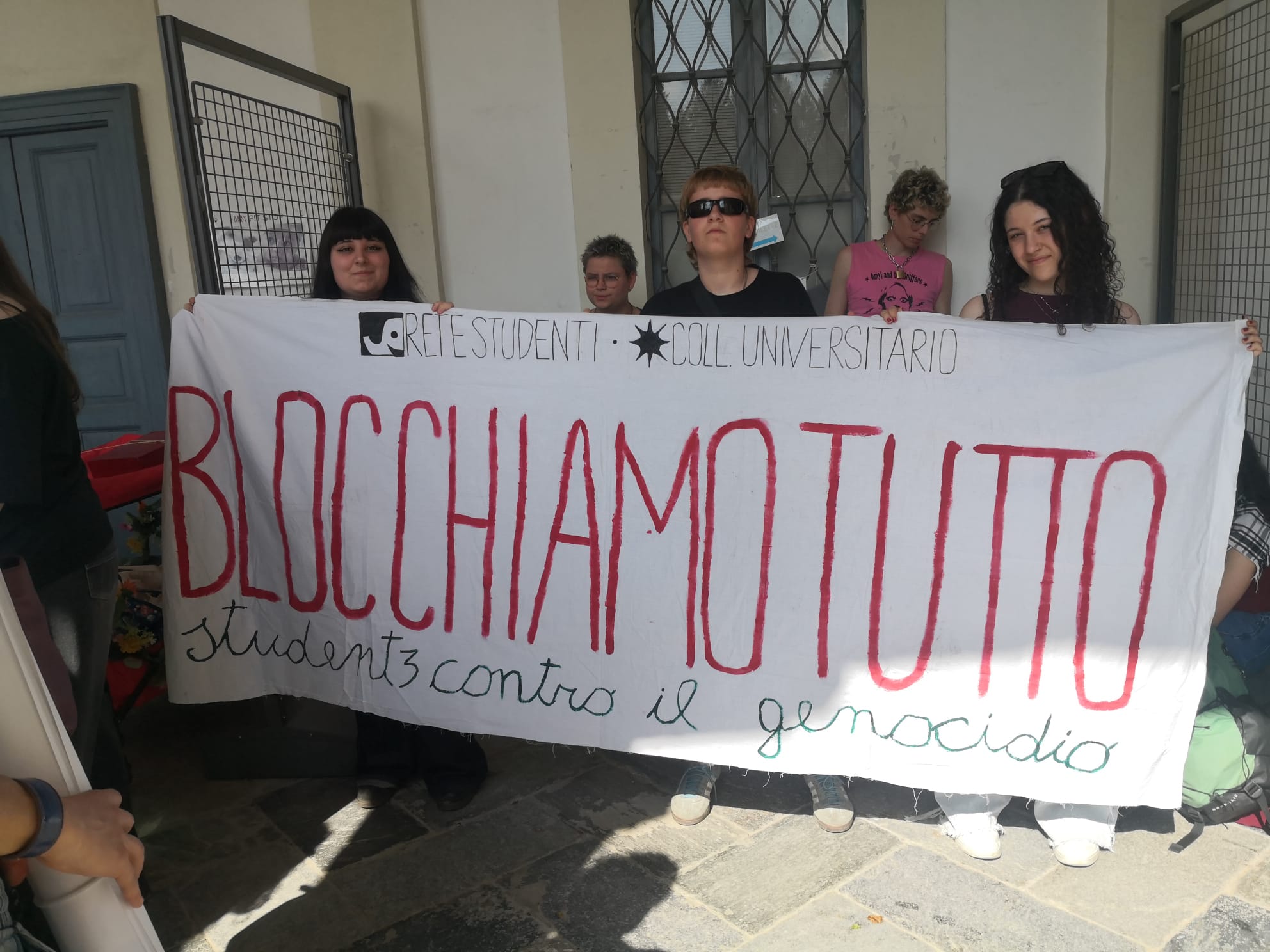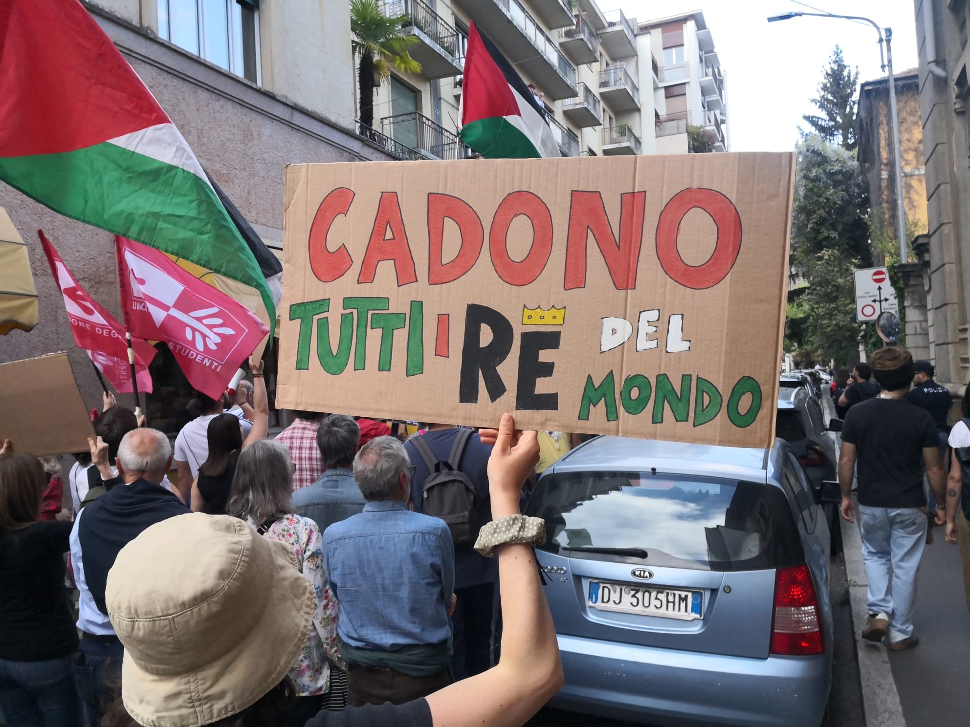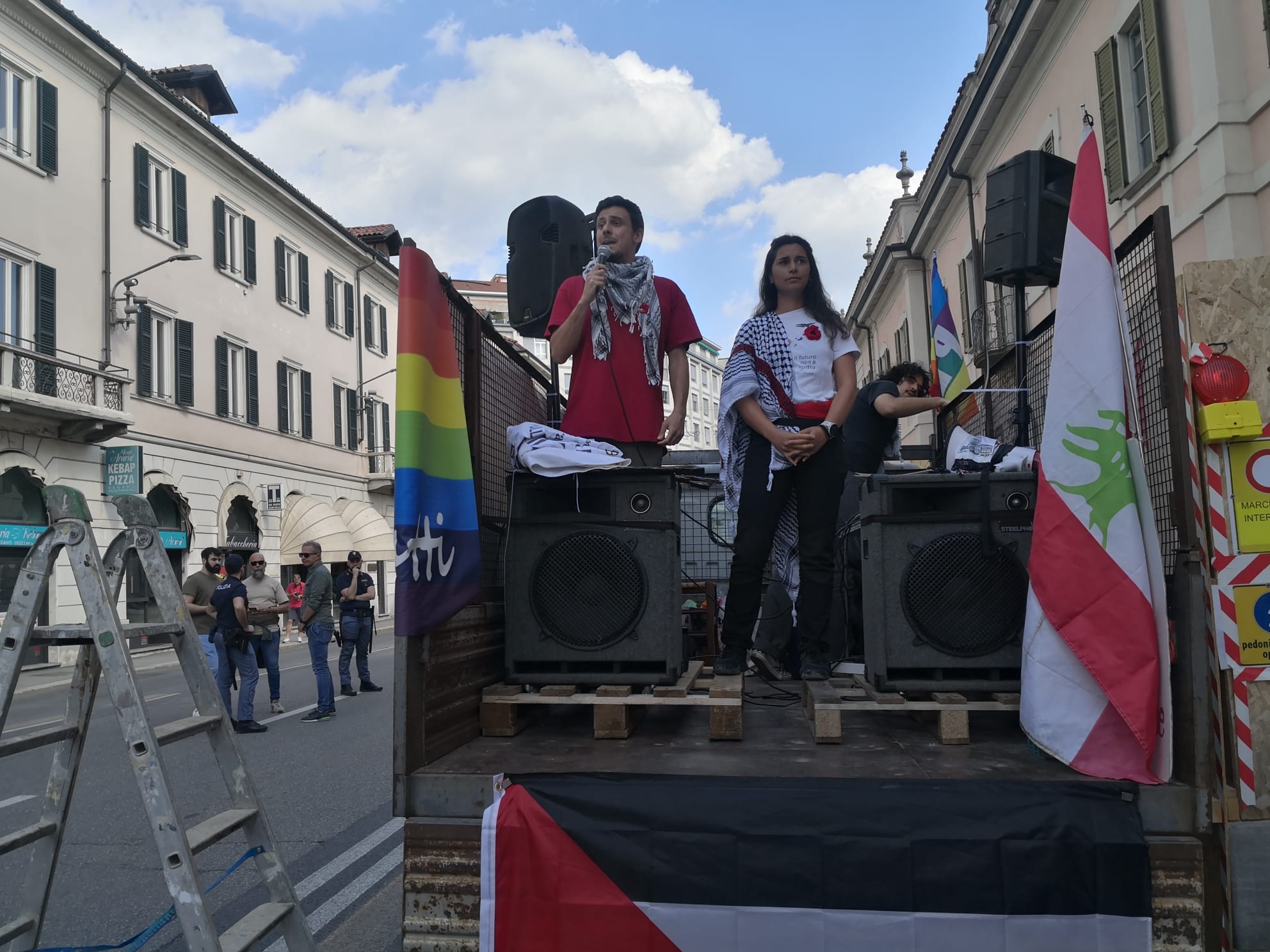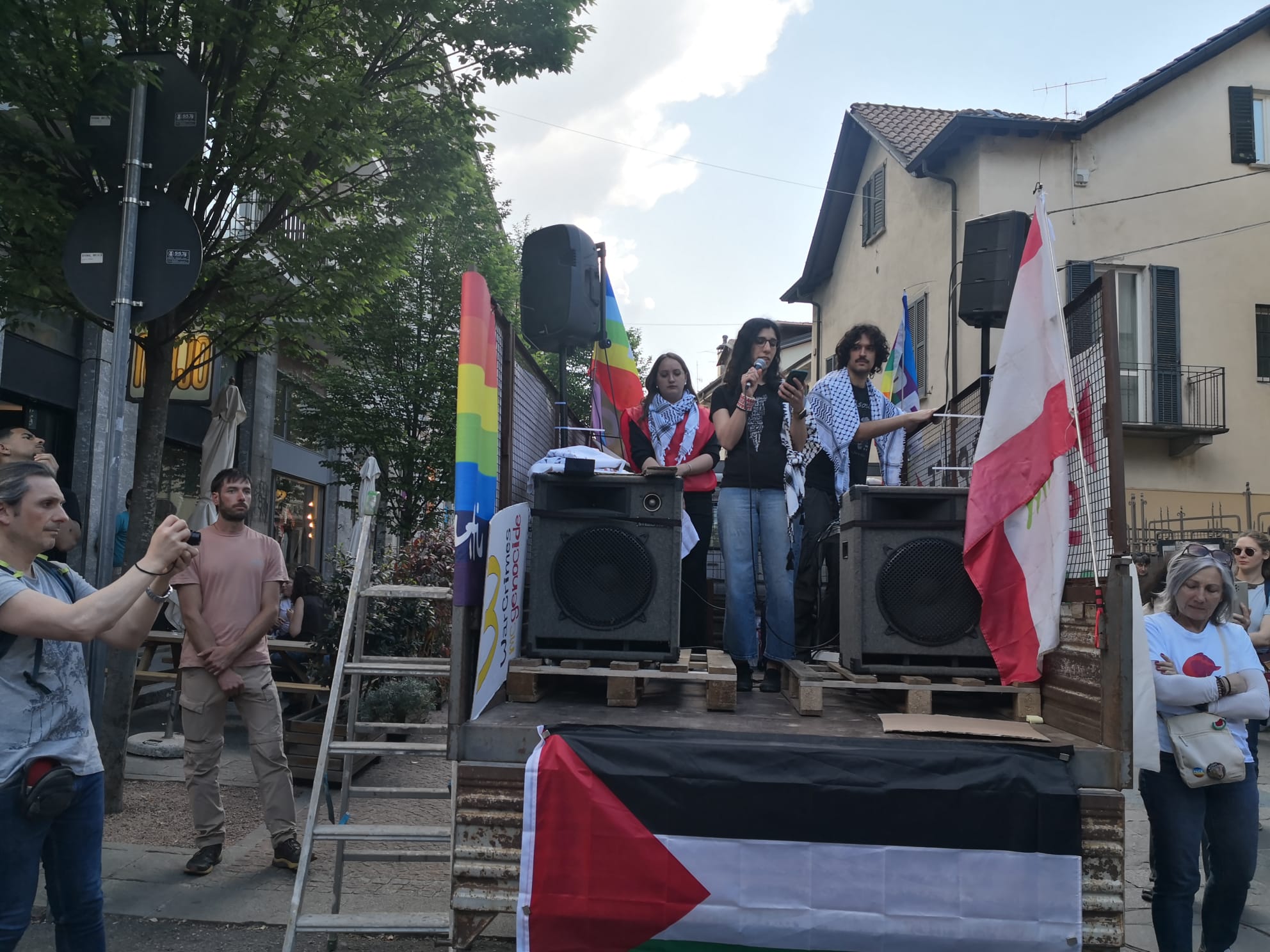 La manifestazione si è conclusa in Piazza Monte Grappa con un invito al boicottaggio e all’organizzazione collettiva per continuare a resistere e a costruire alternative alla guerra.