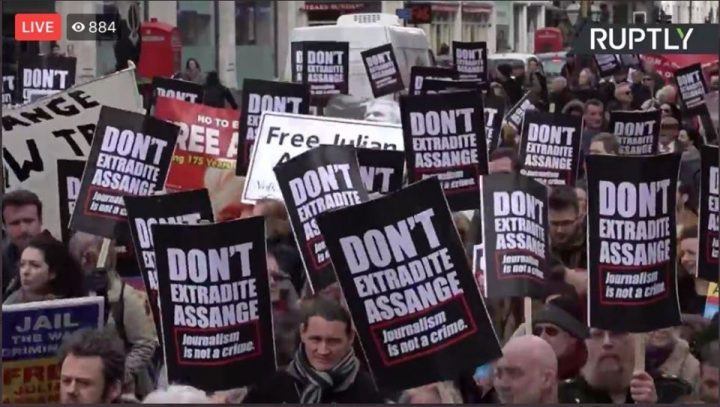 Sabato 22 febbraio migliaia di persone sono scese in strada a Londra per chiedere la scarcerazione di Julian Assange. Sono intervenuti tra gli altri Yanis Varoufakis, il padre di Julian John Shipton, Roger Walters dei Pink Floyd e la stilista Vivien Westwood. Alla manifestazione hanno partecipato anche persone provenienti da diversi paesi europei.