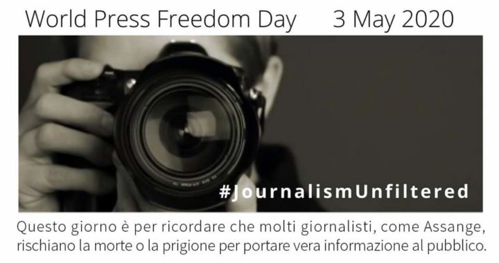 Nella Giornata mondiale della libertà di stampa 2020, il Comitato per la Liberazione di Julian Assange Italia dedica una videoconferenza in diretta streaming, insieme ad altri comitati nel mondo, a sostegno di Assange e Wikileaks.