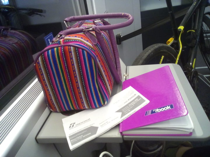 Il macchinista ha una guida un po’ sportiva e fa un paio di frenate al limite, ma il treno è bellissimo, pulitissimo e con un bagno di vero lusso! Qui il controllore si avvicina e prende in mano il mio biglietto. Al padrone della bici piazzata davanti a me – un uomo giovane dal perfetto inglese accentato all’italiana – i doganieri a Chiasso chiedono di vedere i documenti e poi se ne vanno mentre lui fruga nello zaino e risponde: “Si, sono italiano”, alla loro domanda lanciata al vento. Tira fuori una bustina di plastica identica alla mia, con dentro i documenti. Ci guardiamo con un’espressione fra lo stupito e l’amichevole, lui rimette tutto a posto dopo qualche secondo e io, con la frequenza emotiva che mi esce familiare, data la coincidenza, gli ammicco: “Va bene così”.
