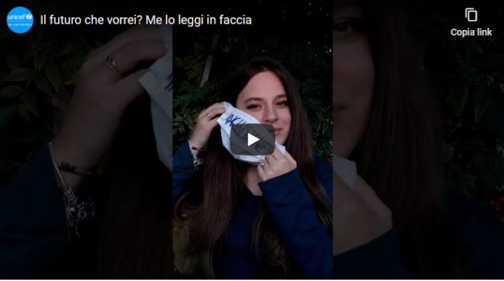 “Per i giovanissimi, che soffrono più di chiunque altro le tante limitazioni imposte dalla crisi sanitaria, è oggi più importante che mai pensare a un futuro oltre il COVID-19. Per questo l’UNICEF Italia, in occasione della Giornata Mondiale dell’Infanzia e dell’Adolescenza – che si celebra il 20 novembre, nell’anniversario dell’approvazione della Convenzione ONU sui Diritti dell’Infanzia – propone da oggi a bambini e ragazzi di compiere un gesto simbolico utilizzando i social media: scrivere sulla propria mascherina un messaggio – una parola, una frase, un simbolo, non c’è limite alla creatività – che parli del domani, dell’avvenire atteso o sperato al di là di questa sorta di “era glaciale” della nostra vita collettiva” prosegue il Portavoce UNICEF.