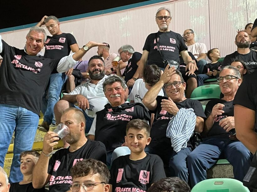“Abbiamo coniugato con i lavoratori, in modo insolito, i due aspetti, quello del gioco e quello della denuncia! – ha spiegato Piero Ceraulo segretario generale della Fillea Cgil di Palermo – Hanno partecipato i lavoratori edili dei cantieri principali della città, come il passante e l’anello ferroviario, ma anche di cantieri privati e degli impianti. Un’ampia rappresentanza del mondo delle costruzioni di Palermo. Presenti anche una decina di restauratrici. Lavoratori edili privi dell’abbonamento. Abbiamo dovuto contenere le adesioni, che continuavano ad arrivare. Cogliamo l’occasione per un apprezzamento al City Football group, e alla società del Palermo Calcio tutta, che ha devoluto 20 accrediti, che ci hanno consentito di aumentare la soglia dei partecipanti, inizialmente 100 persone, fino a 140. Un ringraziamento per avere accolto il lancio di questa campagna su un tema così delicato. La sicurezza è un problema che riguarda tutti i settori”.