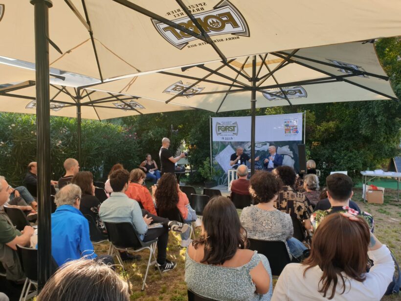 Ieri, all’interno della splendida cornice del Parco di Villa Filippina di Palermo, nel giorno di apertura della quattordicesima edizione del festival dell’editoria indipendente “Una Marina di Libri” – che chiuderà i battenti domenica prossima 11 giugno -, fra le tante iniziative promozionali si è svolta anche la presentazione del volume “Sfruttamento e dominio nel capitalismo del XXI secolo”, curato da Toni Casano e Antonio Minaldi, uscito a febbraio dell’anno in corso per i tipi della Multimage-Collana “I Libri di Pressenza”.