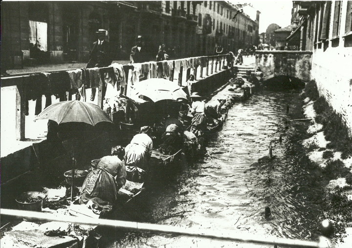 Ma anche i vissuti personali che hanno impregnato i muri delle abitazioni possono avere contribuito a caratterizzare fino anche a modificare, a partire dagli interni, le strutture residenziali e il loro rapporto con l’architettura della città. Qualcosa in questo senso possono dirci gli edifici dove sono nate, in cui hanno vissuto o svolto attività culturale o lavorativa, i territori o le zone connotati in qualche forma dalla frequentazione femminile quotidiana per le mansioni di cura o di lavoro extradomestico. Ad esempio, le alzaie dei Navigli o gli argini di altri tipi di corsi d’acqua fino all’inizio del secolo scorso caratterizzati dalla presenza delle lavandaie (la ricca e variegata ritrattistica di genere ne è testimone), dove ancora sopravvivono resti delle preje (pietre per lavare), dei brellin (assi per insaponare e sbattere la biancheria) e delle tettoie. Oppure pensiamo alle mondine, alle prime operaie tessili, alle tabacchine, alle addette ai laboratori artigianali come le piscinine delle sartorie, modisterie, camicerie. Proprio gli scioperi di queste ultime categorie sono stati occasione delle prime uscite in massa per le vie della città come cittadine consapevoli (a Milano nel 1902, a Torino nel 1898 e poi fino al 1921).