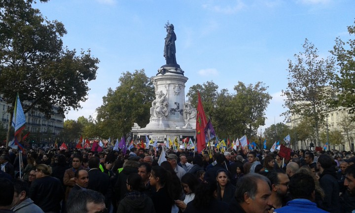 Domenica 11 ottobre migliaia di manifestanti si sono ritrovati a Parigi, per mostrare il loro sostegno alla sinistra turca, appena dopo l’attentato di sabato, costato la vita a più di 100 persone. I manifestanti si erano radunati ad Ankara in occasione di una marcia pacifista per di protesta per la ripresa delle violenze da parte dell’esercito turco contro i curdi nel sud-est del paese.