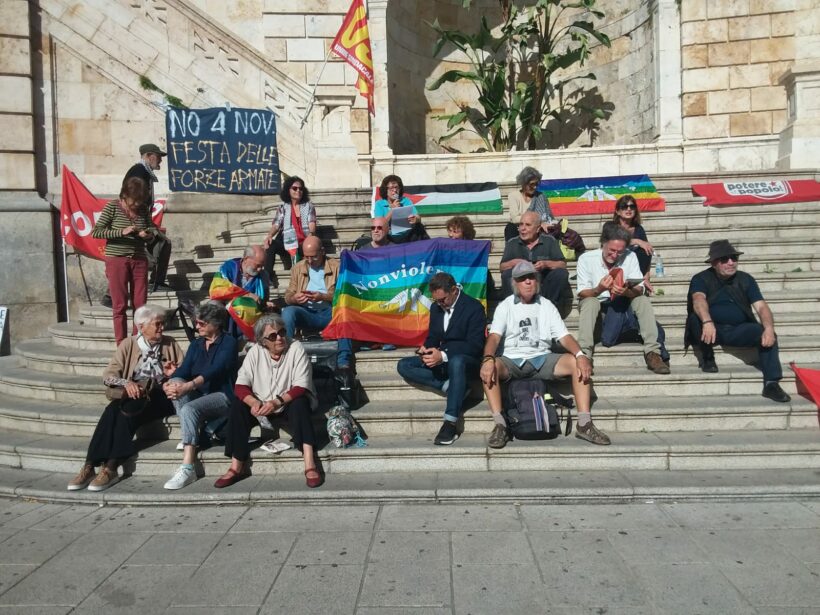 Stamattina, in piazza Costituzione, ai piedi del Bastione di Saint Remy, un presidio per dire NO alla celebrazione della guerra. La piazza A. Gramsci, richiesta per la manifestazione da Cagliari social Forum, Comitato di solidarietà con la Palestina, Osservatorio contro la militarizzazione delle scuole e delle università, è stata negata dalla questura di Cagliari. Nel Parco delle Rimembranze, dirimpetto alla piazza le celebrazioni ufficiali per la “Giornata dell’Unità Nazionale e delle Forze Armate”.