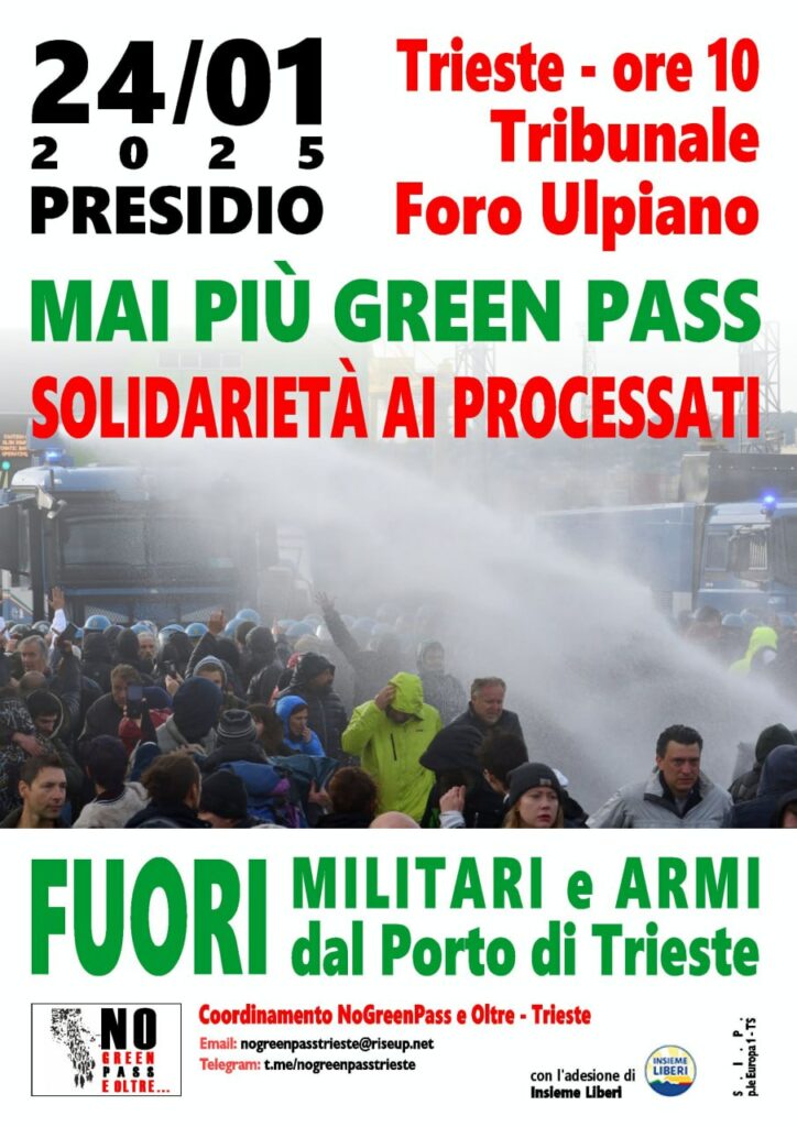 Venerdì 24 gennaio dalle 10.00 saremo fuori dal tribunale di Trieste per solidarizzare con coloro che, quella stessa mattina, verranno processati a seguito dello sgombero violento del presidio al porto, il 18 ottobre 2021.