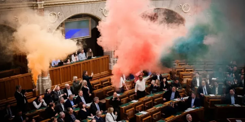 Con 136 sì, 27 no e nessun astenuto il Parlamento ungherese ha approvato nel pomeriggio del 20 marzo l’emendamento alla legge principale secondo la quale il diritto alla “protezione e alle cure necessarie per un corretto sviluppo fisico, mentale e morale dei bambini” precede i diritti costituzionali come la libertà di riunione e di espressione. Viene così di fatto vietato il Pride in programma per il 28 giugno prossimo. Mentre Fidesz, KDNP, Mi Hazánk e Jobbik votavano per il sì, tra i banchi del Parlamento i deputati di Momentum hanno inscenato una protesta con fumogeni e lancio di volantini con foto di Orbán e Putin che si baciano. Lo scopo (fallito) era quello di bloccare o almeno procrastinare la votazione.