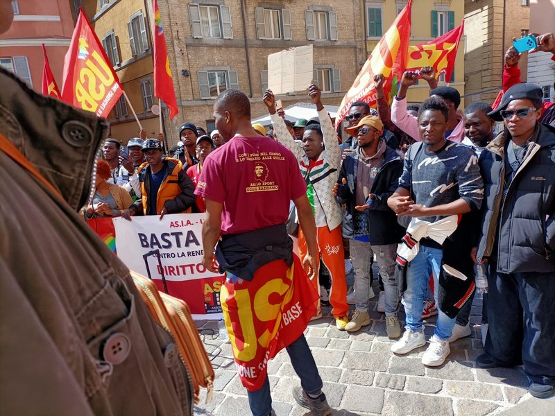 Oggi in Piazza del Papa ad Ancona si è svolta una partecipata manifestazione organizzata da ASIA-USB Ancona e SLANG A-USB Abruzzo per rivendicare i diritti dei migranti e chiedere il permesso di soggiorno per tutti. Un’importante mobilitazione che ha visto una massiccia adesione da parte della comunità migrante e di numerosi sostenitori. Durante la manifestazione, una delegazione di AS.I.A.-USB e di SLANG-USB è stata ricevuta dai responsabili dell’Ufficio Migranti della Prefettura, dal Presidente della Commissione Migranti e dalla Capo di Gabinetto della Prefettura. Nel corso dell’incontro, sono state esposte le preoccupazioni relative ai tempi di attesa eccessivamente lunghi per il rilascio dei permessi di soggiorno, una problematica che incide profondamente sulla vita di migliaia di persone. In risposta alle nostre istanze, ci è stato comunicato che sono stati recentemente assunti nuovi funzionari incaricati esclusivamente della gestione delle richieste di permesso di soggiorno. Un passo che, se attuato concretamente, potrebbe rappresentare un miglioramento nell’efficienza del sistema. ASIA-USB Ancona e SLANG A-USB Abruzzo continueranno a monitorare la situazione e a mobilitarsi affinché i diritti dei migranti vengano pienamente riconosciuti. L’impegno per un sistema più giusto ed equo non si ferma qui: la lotta per il permesso di soggiorno per tutti e per tempi di attesa più brevi continua. Fra tre mesi saremo di nuovo in piazza per verificare le promesse fatte dalla Prefettura.