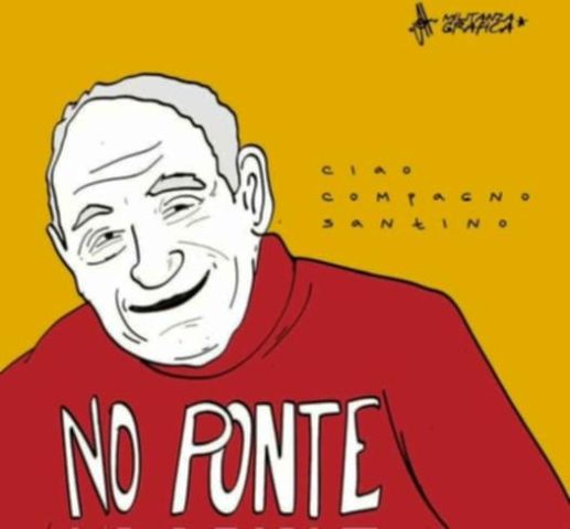 Non poteva mancare il ricordo accorato del movimento “No Ponte”: “Santino è stato una presenza fondamentale nel movimento no ponte fin dall’inizio, dalle prime assemblee, dai primi cortei. Di tutti noi, è stato quello che di più ha incarnato la militanza no ponte. C’era sempre. Anche quando lo facevamo arrabbiare. La volta dopo era nuovamente lì, in assemblea o in piazza. Con lui presente il ponte non è stato costruito e non sarebbe stato costruito. Sarebbe difficile oggi ringraziarlo per tutto l’impegno che ha messo in questa battaglia. Forse l’unico modo per farlo sarà impegnarsi ancora di più. Sarebbe difficile per noi immaginare una manifestazione senza di lui. Per questo gli riserveremo sempre un posto in testa al corteo”.