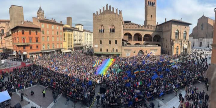 Ilaria Venturi ha scritto così su ‘Repubblica’ “Oltre cinquemila nella piazza per l’Europa di Bologna. Più generazioni, anime diverse, un comune sentire “perché ora l’esigenza e l’urgenza è di esserci e di dire la nostra: Europa unita e di pace”.