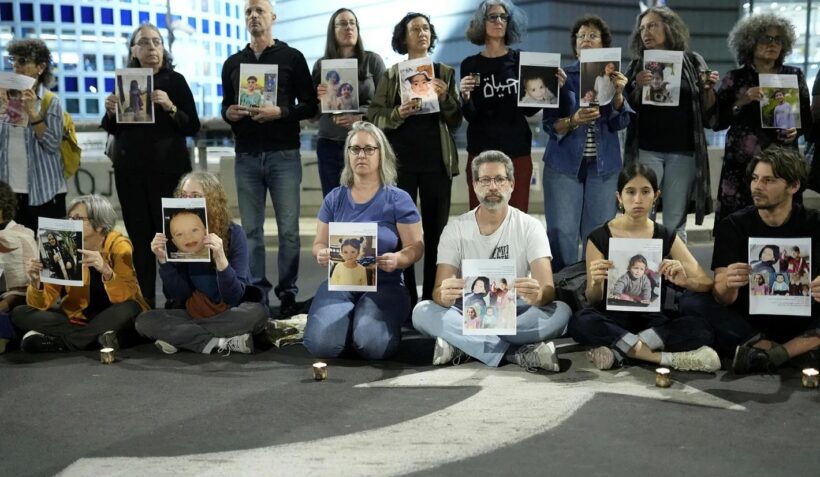 Gli attivisti contro la guerra che mostrano i volti dei bambini morti a Gaza sanno che il destino degli ostaggi e dei bambini palestinesi abbandonati a Gaza, il cui unico crimine apparente è quello di essere nati nell’enclave, è strettamente intrecciato.