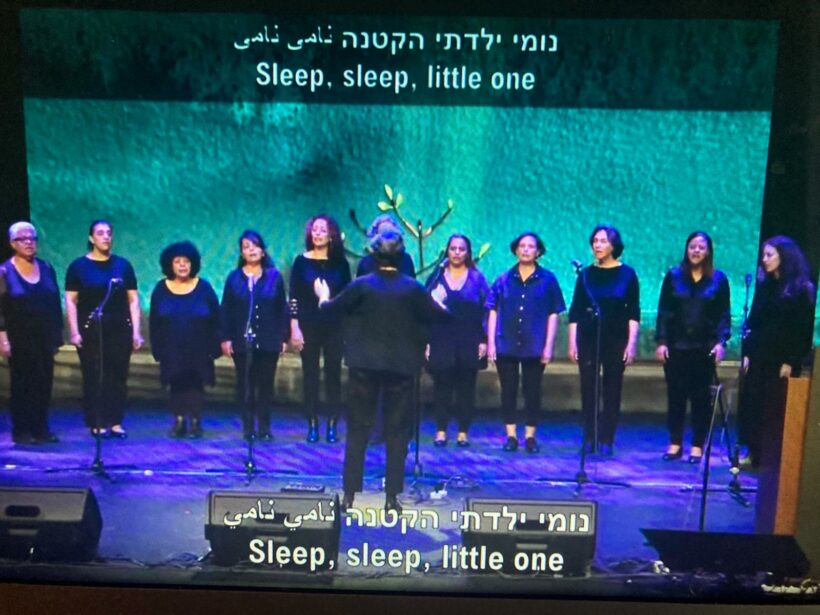 La situazione di particolare tensione di quest’anno, come già per l’anno scorso, ha di nuovo imposto agli organizzatori la scelta di uno spazio chiuso, in un teatro di Giaffa appunto, e solo per inviti e però fruibile anche in streaming, registrandosi sia individualmente che come “sedi ospitanti”. Ancora non sappiamo quante siano state in tutto le visualizzazione, ma ben 160 sono state appunto le platee oltre a quella di Giaffa: venti postazioni in Israele grazie alla collaborazione dell’organizzazione “sorella” Standing Together, parecchie anche in Cisgiordania, la maggior parte nelle varie cappelle della diaspora ebraico-palestinese sparse in Canada, USA, Europa, con ben nove situazioni in Germania, e poi in Francia, Spagna, Belgio, dove la proiezione è stata organizzata addirittura al Parlamento Europeo! Per l’Italia non possiamo non menzionare il bel collegamento virtuale organizzato da Ilaria Olimpico insieme a Uri Noy Meir per Imaginaction, e la piccola cittadina di Chiavenna in Valtellina, con una forte tradizione di pacifismo.
