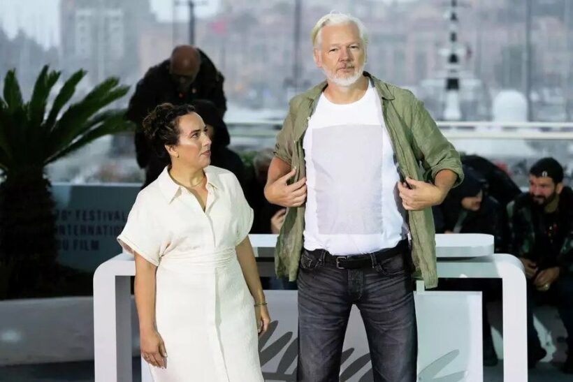 Al festival di Cannes Julian Assange ha indossato una maglietta con i nomi di 4.986 bambini al di sotto dei 5 anni uccisi da Israele a Gaza. Il post pubblicato sull’account, che racconta la silenziosa protesta contro il genocidio a Gaza, ha il titolo significativo: “Fermate Israele!” che è anche stampato sul retro della maglietta.