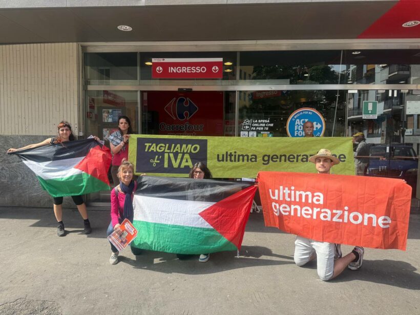 Con la giornata di ieri si è chiuso un nuovo capitolo della mobilitazione promossa da Ultima Generazione, che ha visto lanciare con forza in tutta Italia la campagna Tagliamo l’IVA, attraverso azioni coordinate nei supermercati per chiedere al governo il taglio dell’IVA sui beni essenziali.