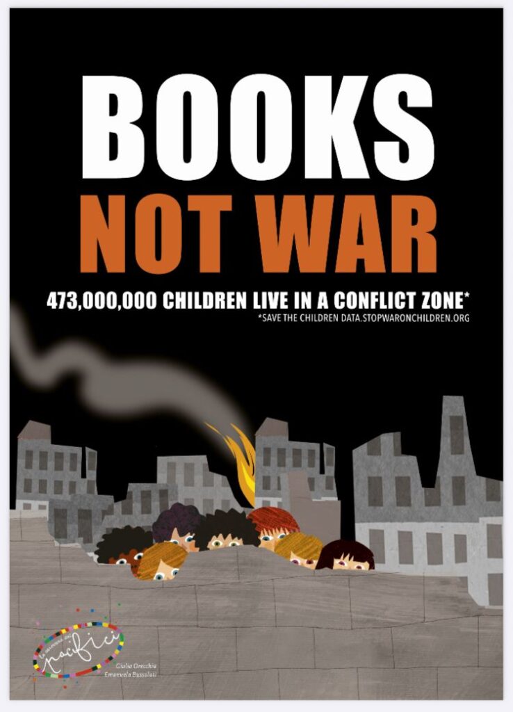 Alla Fiera del libro per l’infanzia di Bologna appena conclusa, le due autrici dell’illustrazione che vedete in alto, Giulia Orecchia e Emanuela Bussolati, hanno disseminato copie nei vari luoghi per comunicare un messaggio di pace contro ogni guerra. Il disegno,…