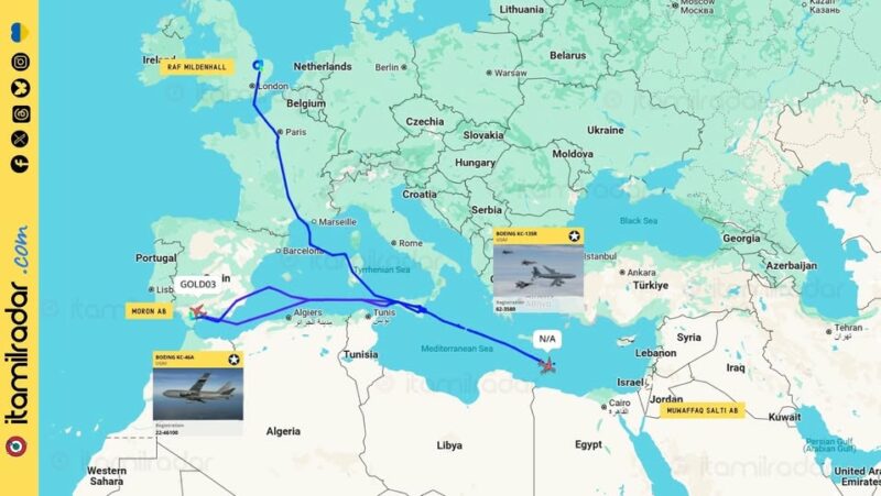 Nel pomeriggio di venerdì 20 giugno si è concluso il trasferimento di 12 cacciabombardieri F-22 dell’Aeronautica Militare degli Stati Uniti d’America dalla base britannica di Lakenheath a quella di Muwaffaq Salti, Giordania, in vista del sempre più probabile attacco USA…