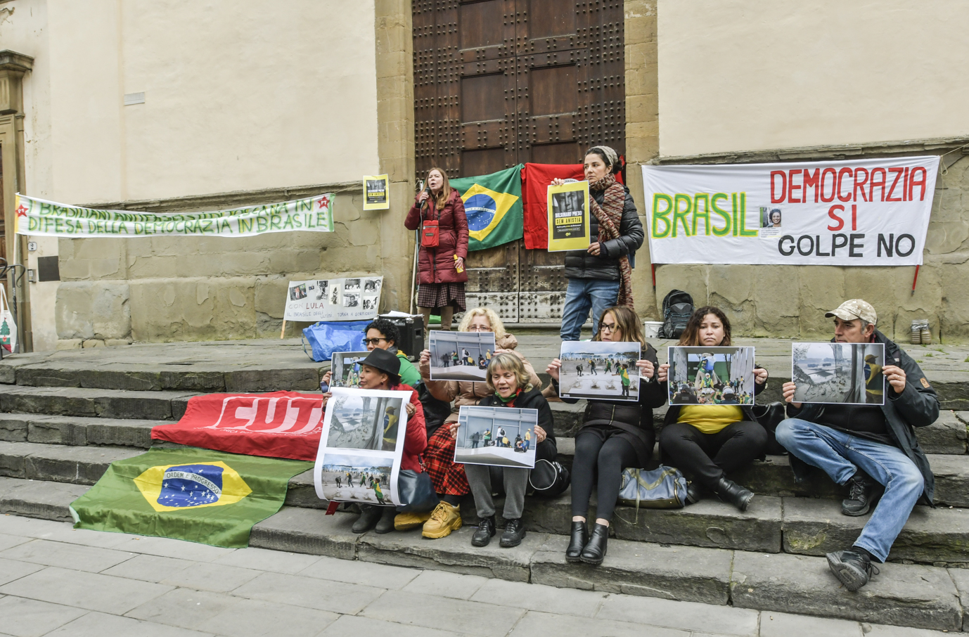 Questo pomeriggio a Firenze  nel centro storico  in piazza San’Ambrogio si è tenuto un presidio della comunità brasiliana a sostegno del presidente democraticamente eletto Lula. ” Noi brasiliani siamo oggi in piazza per la difesa dello Stato Democratico di diritto…