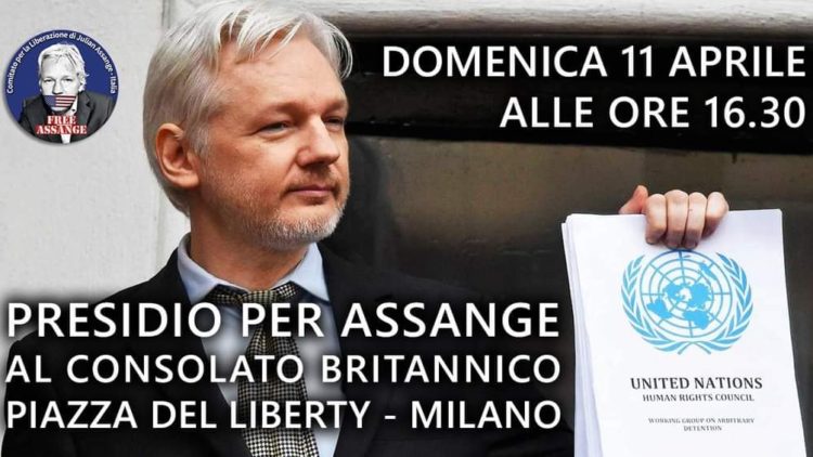 Presidio per Julian Assange domenica 11 aprile alle ore 16.30 a Milano