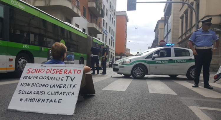 Attivisti seduti da soli in mezzo al traffico nel centro di Milano: ER di nuovo in azione