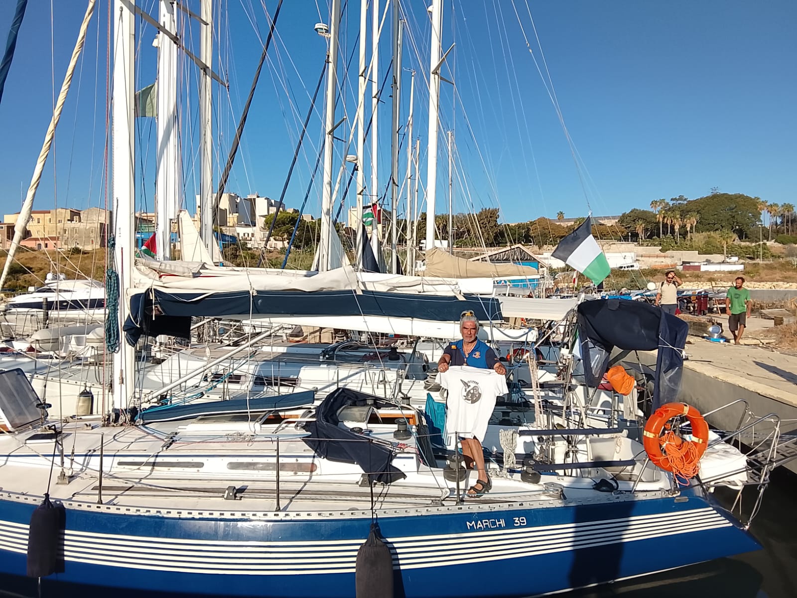 All’alba è arrivata la barca dello sciamano di Genova, Fulvio. Un’emozione speciale, perché il motore non andava, il tempo era inclemente, quindi la barca è entrata a vele spiegate nel porto siciliano che ci ospita. Un altro carico di umanità…
