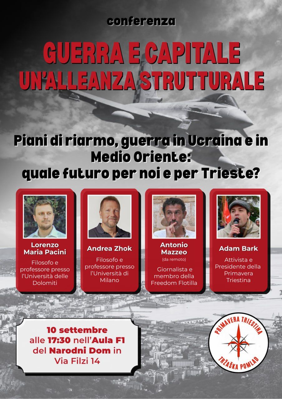 Segnaliamo la nostra conferenza intitolata “GUERRA E CAPITALE: UN’ALLEANZA STRUTTURALE” che si terrà presso l’aula F del Narodni Dom mercoledì 10 alle ore 17. A seguire la descrizione: Nel corso dell’incontro verranno affrontate diverse questioni: dal rapporto esistente tra capitalismo…