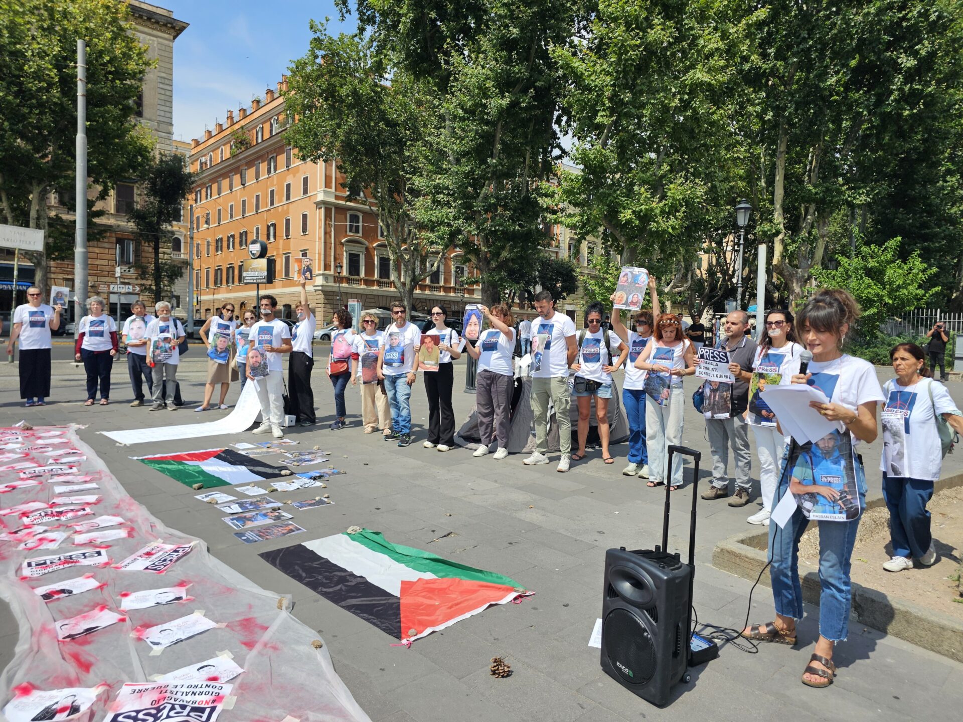 Roma, flash mob per denunciare la strage di giornalisti a Gaza