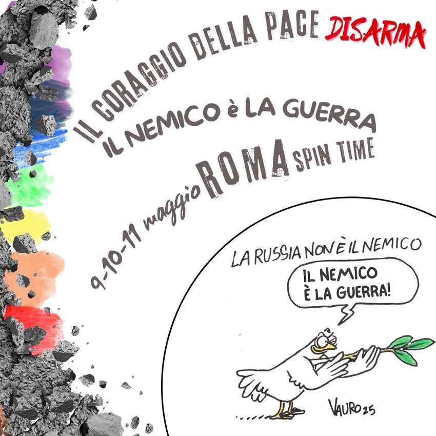 Dal 9 all’11 maggio si svolgerà a Roma, presso l’auditorium dello Spin Time, La V Edizione de Il Coraggio della Pace_Disarma, dal titolo “Il nemico è la Guerra”. Ringraziamo Vauro per averci ancora una volta donato una sua opera, che…