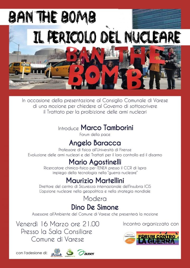 venerdì 16 marzo: Ban The Bomb: presentazione della mozione al comune di Varese a favore del Trattato per la Proibizione delle armi nucleari – Presso Sala Consigliare Comune di Varese – ore 21