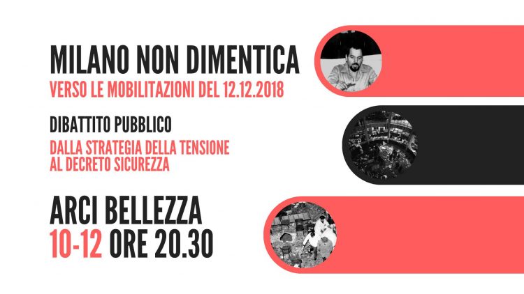 Lunedì 10 dicembre alle 20.30  Arci Bellezza, via Bellezza 16/A, Milano Intervengono: Piero Scaramucci, Claudia Pinelli e Daniela Padoan Modera: Andrea Cattania, coordinatore Sez. Anpi zona 5 Il 12 dicembre 1969 fascisti e apparati dello stato perpetrarono la strage di Piazza…