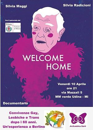 Venerdì 10 aprile 2015 dalle 21 Mondo senza Guerre, via Mazzali, 5 Milano Gli Arcobaleni in Marcia in collaborazione con Arcilesbica Zami invitano alla proiezione di “Welcome Home”, documentario sulla Comunità/residenza intergenerazionale Lebensort Vielfalt per anziani LGBT a Berlino. Al…