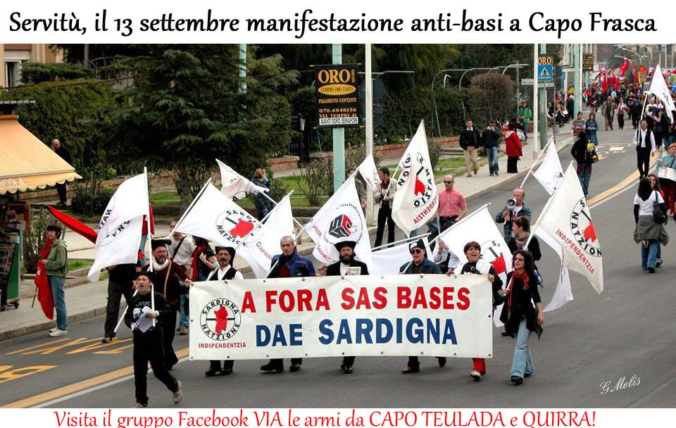 Sabato 13 settembre 2014 alle 16,30 si terrà una grande manifestazione popolare davanti al poligono militare di Capo Frasca, a Oristano, per chiedere il blocco immediato delle esercitazioni militari, la cancellazione di tutte le servitù e la chiusura, bonifica e…