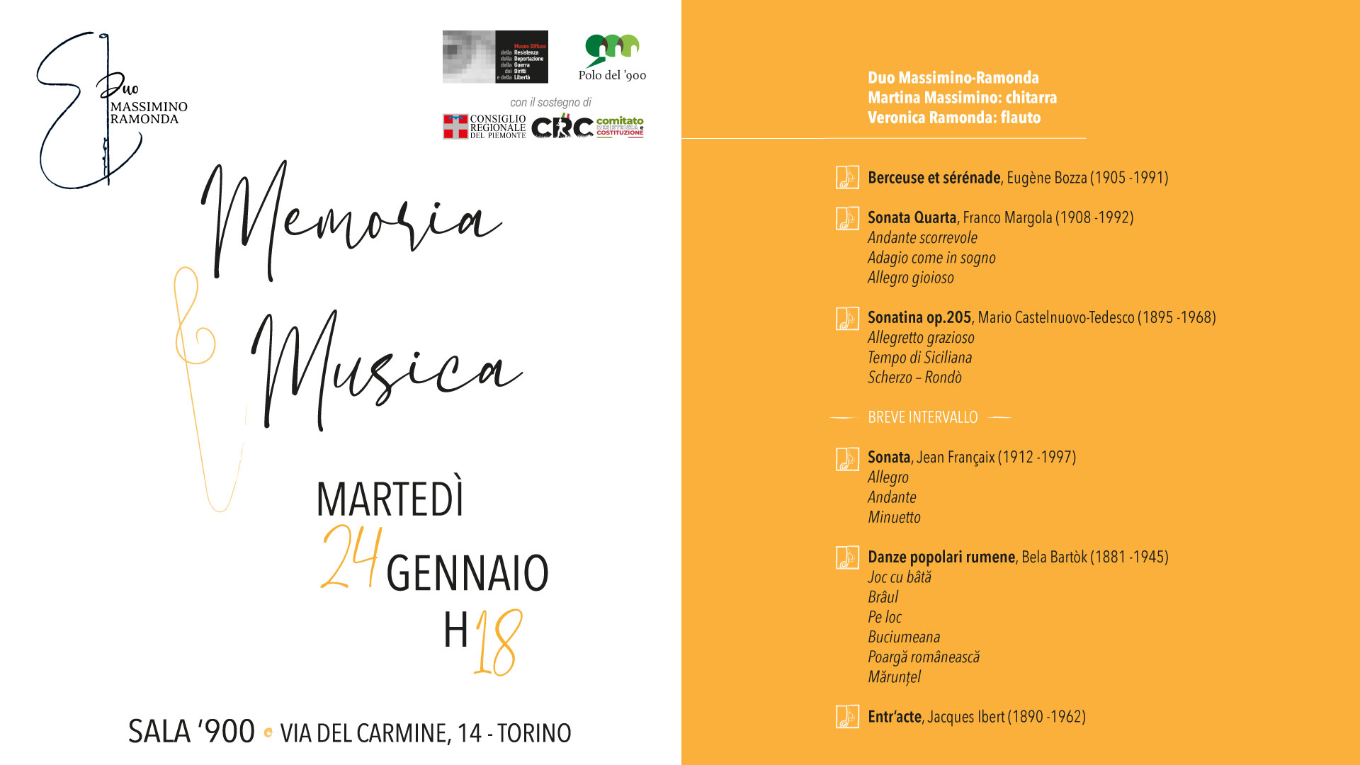 Museo Diffuso della Resistenza | Memoria&Musica | duo Massimino-Ramonda