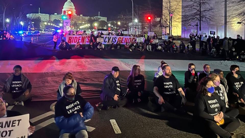 Centinaia di attivisti bloccano le strade di Washington e chiedono la fine del genocidio a Gaza