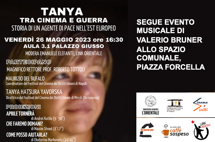 Venerdì 26 maggio l’attivista est europea sarà alle 16:30 all’Università Orientale di Napoli, segue alle 19:30 l’appuntamento nello Spazio Comunale Piazza Forcella con il concerto di Valerio Bruner. Tanya Hatsura-Yavorska, attivista dei Diritti Umani nell’Est europeo insanguinato dalla guerra russo-ucraina,…