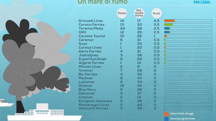 Soltanto 4 navi su 174 tra quelle prese in considerazione hanno già adottato dei sistemi per ridurre le emissioni inquinanti, mentre sono in costruzione solo altri quattro traghetti meno inquinanti. Poco più del 2% del totale della flotta circolante nei nostri mari ha messo in…